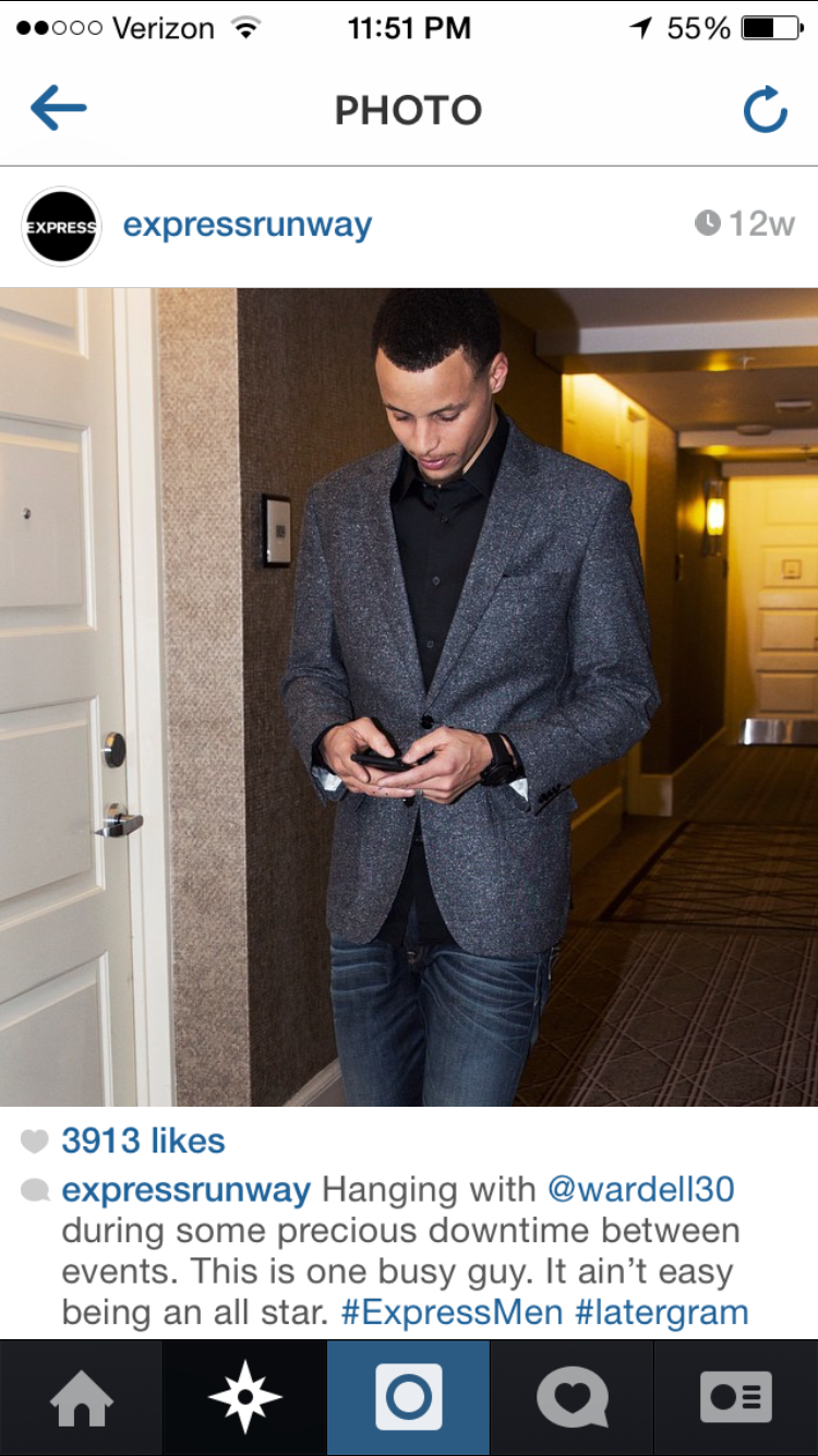 In my role as Lead Creative Producer and chief intermediary between Stephen’s team and EXPRESS, I cultivated a strong rapport with his team that led to more opportunities to capture authentic content with Stephen. I even had the privilege of styling him in EXPRESS for all press engagements during the 2014 NBA All Star Game in New York City. This experience further cemented the successful brand partnership.